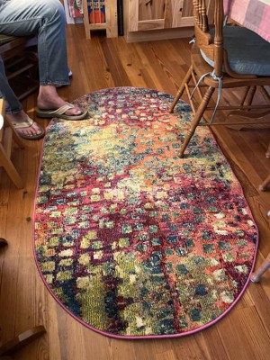A: The rug's pile material is 100% polypropylene, known for its durability.