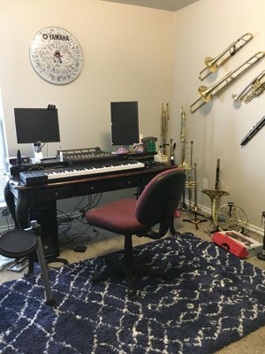 • Size in FT: 4' 1" x 6' 1" Rectangle - Size in CM: 125 x 185 - Pile Height & Thickness: 1.5" - Colors: Navy Blue, Ivory