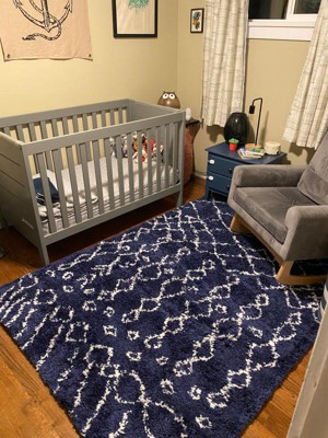 Love everything about this rug. (Only wish it was a little less expensive so I could afford the big one!) It is soft, thick and I love the pattern. Bought the navy, but I will be buying the ivory and grey for my bedroom also! Go ahead and buy this one, you won’t be disappointed!