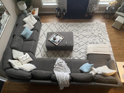 Expected it to shed and so surprised there was none. Super soft and really brightened up the dark wood floors. Puppies absolutely love it too. Was nervous about color with one white and one black showing fur but high pile doesn’t show a thing. Spilt soda on it and cleaned right up. There is one high traffic corner starting to show wear already but expected as much before purchase. Great purchase very happy!