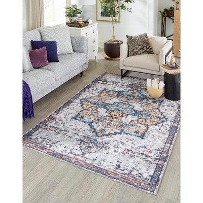 Timeless looks on washable rugs; what's not to love? With bright contemporary colors and inspired medallion designs, the Renaissance Collection brings home worldly design in a low-maintenance package. Durable modern materials and a cotton backing mean cleaning is as easy as throwing it in the washing machine! The printed traditional designs are available in bold colors ranging from dark blacks and blues to bright greens and pinks blend together like tie-dye, giving you lots of options. A subtle abrash gives the rugs a casual, distressed look perfect for bohemian and shabby-chic decor.