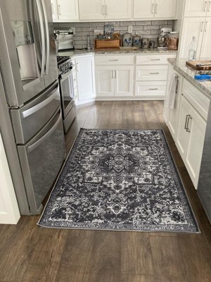 I purchased this rug for use in my laundry room. The size was perfect; however, I was very disappointed with the color. The color is labeled as dark gray but it appears more dark blue.