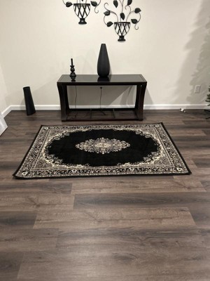 Really beautiful rug, looks high quality. The black shows a lot of lint but I should’ve expected that I guess with a black rug. It’s plush with little to no shedding and the print quality looks great.