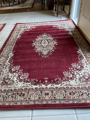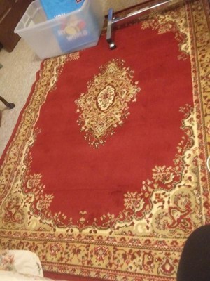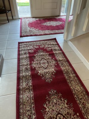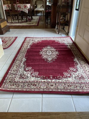 This carpet is perfect for my entryway. I ordered it along with the matching runner. Good quality and the colors are lovely. It does take awhile for the creases to relax, as you can see in the photos.