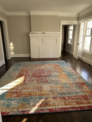 A: The rug is power-loomed from durable polypropylene yarns, designed to withstand everyday wear and tear.