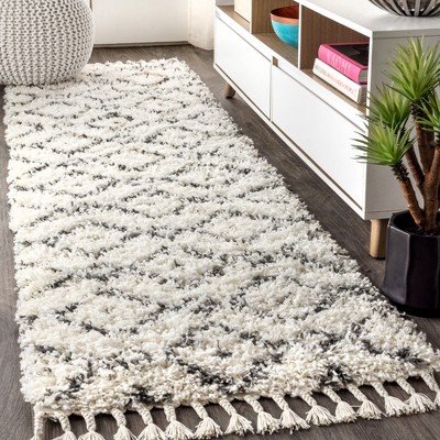 Sink into this tranquil shag pile. Featuring a calming mix of geometric and abstract designs in soothing blues, grays, and white, the Serenity Shag Collection is an easygoing addition to any room. Variations in color give a slightly vintage look that is perfect for casual modern and transitional styles alike. Braided fringe brings an extra dimension to the tranquil visual style. The thick, 1/2" polypropylene shag pile is easy to clean and great for sinking your toes into. It's the perfect collection to bring calming comfort to low traffic areas like bedrooms and playrooms.