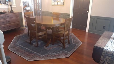 Lovely rug! I was really impressed with the quality of this rug, and the octagon shape is pretty cool. This rug feels very durable and the colors are beautiful.