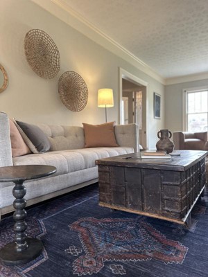 This rug was just what I needed. I needed something thin enough to not get caught under a door, but that looked classy and slightly antique. The rug feels expensive but love that it’s washable!