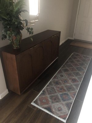 Looking for a deep, subtle design? Love the shades of dark blue, magenta, fuchsia and rich purple? Then the Sisu Collection is the perfect choice. Each rug in the collection features a darkly rich combination of color palettes of terracotta, brown, gray, ivory, orange, turquoise, rust red and pink. The collection features a combination of over-dyed and distressed coloring in both traditional and geometric designs. Patterns include everything from uniform squares and diamonds to geometric patterns and primitive designs. With such a variety of patterns in a cohesive look and feel, it's easy to create a consistent look throughout the home with multi-room placement. Made of polyester chenille, the construction features a distinctive flatweave construction machine woven power loomed. The low pile height makes it equally durable and low maintenance. Machine washable, each rug is both kid-friendly and stain resistant!