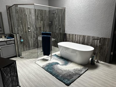 Go bold! Shag rugs are often only available in solid colors, happy to be the backdrop to the surrounding decor or letting their textured pile do the work of bringing visual interest to the room. That's not the case with our Soft Touch Shag Collection! Available in bold, contemporary swirls and Moroccan-inspired asymmetric lattice patterns, the Soft Touch Shag Collection takes center stage in any room its in. The dramatic designs are kept in check thanks to cool gray, green, and blue hues that bring an element of sophistication. Thick, 1/2" shag pile adds another level of texture while also providing a soft place to sink your toes into. The Soft Touch Shag collection is perfect for contemporary living rooms or dramatic bedrooms.