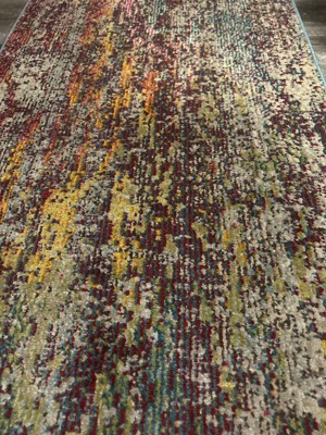 A: The rug features deep magentas and navy blues, along with multicolor variations for a vibrant look.