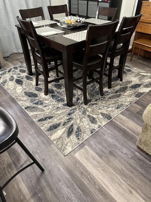 I have a square dining table and it was very difficult to find a rug that fit in my space until I found this rug on Rugs.com. It’s a great height for allowing the chairs to easily slide out, yet is still soft on the feet. The colors are exactly like they were online. I love it!