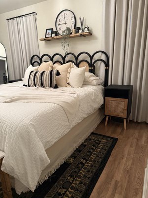 A: The rug features bold geometric designs and botanical patterns for a distinct look.