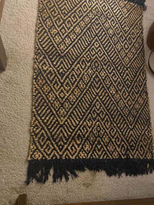 • A: The rug is made from 50% jute and 50% cotton, featuring natural fibers.