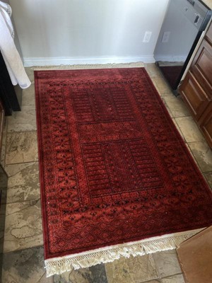 I love classic rugs, but am also very much on a budget, so couldn't resist what I saw when accidentally running into this listing on the internet. When it arrived, I was very pleasantly surprised with this rug, especially for the low, low price. It's thick, well made, and a deep, vibrant ,"classic" red. There were no loose threads or nap whatsoever - quite a feat for a new rug. White edge fronds are well attached and nothing's missing. I actually put it on the wall behind bed as a headboard, but I have no doubt it could handle foot traffic. It's gorgeous! You can bet rugs.com is bookmarked and I'll be looking here first the next time I'm looking for a rug.