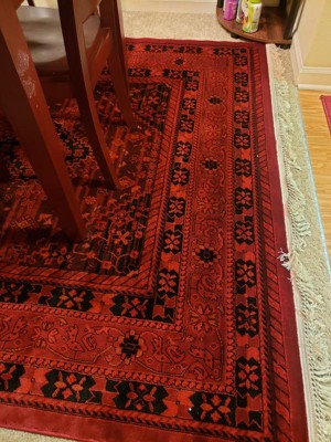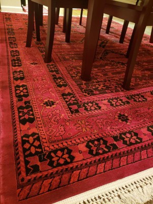 This rug is like magnificent Persian rug with these beautiful red color. I am satisfied with its quality and softness.