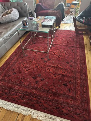 This rug is even nicer than I expected. I was worried that it might be too bright for my living room, but it has varied shades of red and works really well with my grey sofa and one red accent wall. The fringe is a nice detail and my Roomba has no problem with it. I’m really glad I purchased it.