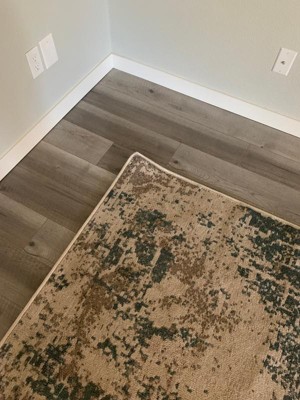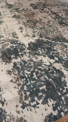 A: The collection showcases abstract, distressed effects and contemporary designs in light, neutral tones.