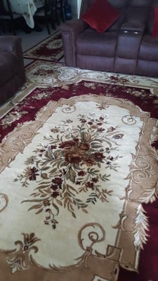 I bought this rug about a month ago and thought it would be great in my living room. I wish I had bought a smaller size as it rather overwhelms the space. Also I was disappointed that it was much lighter than the runner. Too much light space not enough red.