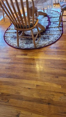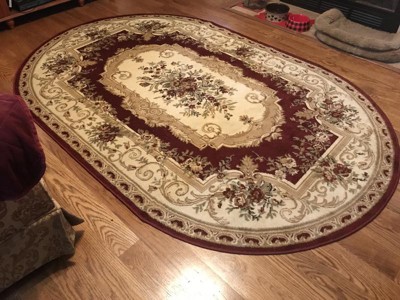I bought this oval rug last month. It looks perfect in my family room and I love it! The room is pretty small but after putting down the rug it makes the room look bigger. The material is very good. Price is reasonable. Fast delivery. I am very satisfied!
