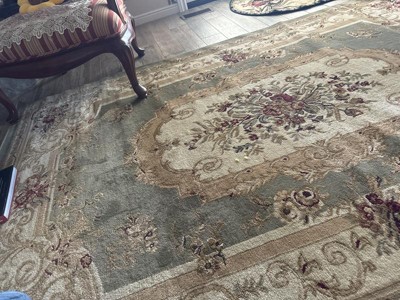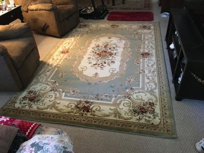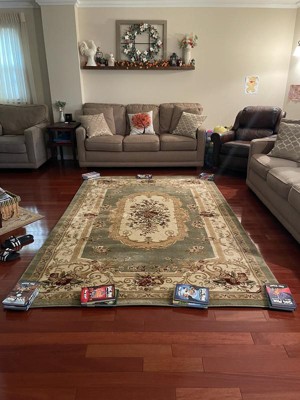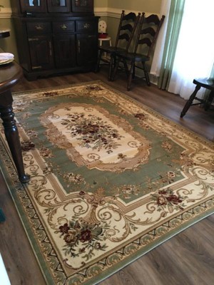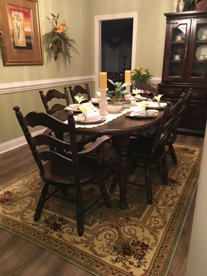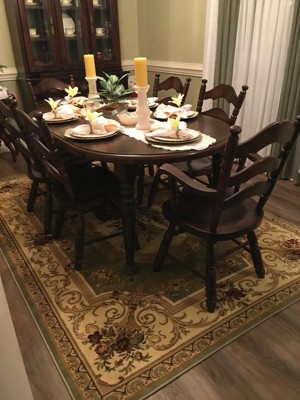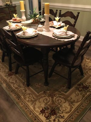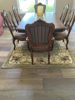 Love the look of this Chateau Rug. Fits perfectly under our dining room table and chairs. Love the colors and they match the round chateau rug we purchased for our living room.