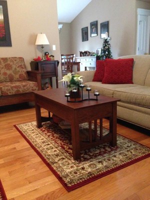 I selected this rug to be used under my coffee table on hardwood floor. I'm very pleased with the quality of the rug and the rich, warm design accents the coffee table, adding just the right amount of color to my living room