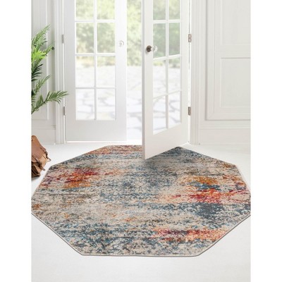 We put this Octagon Rug under our round kitchen table which is located in a 3-sided picture window popout. We previously had a 5' round rug, but it didn't really match the floor design. Now, the new rug fits perfectly and the pile is so soft on my bare feet at breakfast. It matches our runner also from Rugs.com, and we have now added 3 more area rugs in the kitchen. Best of all, our black lab loves to move from Rug-to-Rug while begging for table scraps. Great Job Rugs.com! BTW: GREAT SERVICE!