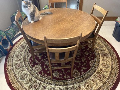 The 7’9” round rug is perfect for my 10’ x 11’ dining room! It replaces a 7’9” x 10’11” rectangular rug that was too big and made the room look small. I have a 4’ round antique oak dining table that looks great on the rug. I am a happy camper!