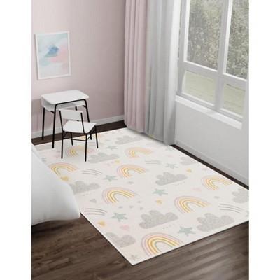 Create a magical atmosphere that will make memories to last a lifetime. Bring a land of unicorns, jungle animals and happy rainbows to a kids room and let imaginations soar. Each kids rug in the Whimsy Collection features soft, muted tones that will perfectly match any aesthetic. There's a style for every age, from happy lambs, kitties and cars for younger kids to more grown-up teen rugs with floral and sports styles for bigger kids. Each colorful rug is made from extra-touchable kid-friendly, stain- resistant polypropylene and is machine woven power loomed with a medium pile height. Choose from many designs from interactive to soothing, or combine for multi-room placement. Bring a child's room to life and spark the creativity that will brighten any space. Each rug in the Whimsy Collection is sure to make a cherished place that inspires play and harmonious feelings.