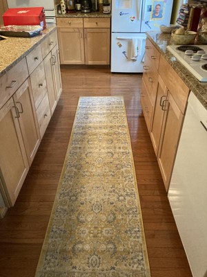 Size in FT: 2' x 8' Runner - Size in CM: 61 x 244 - Pile Height & Thickness: - Colors: Tuscan Yellow, Blue, Ivory, Gray