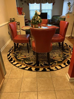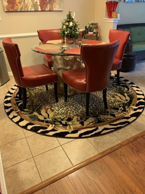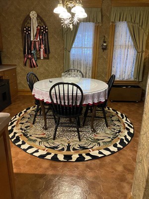 I love this rug!! It is well made, makes my kitchen and dining area a bit offbeat and interesting!! I have a 4 feet round one by my sink area and the large one under my funky wooden claw footed table with matching chairs. All if my other rugs are traditional Persian. This bit of “ Out of Africa” in my kitchen and dining area looks great!!!’ Goes with many of my Haitian paintings.
