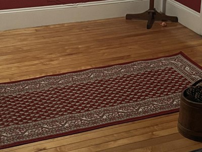 A: The red color option of this collection is a Dark Red. Colors in this rug include: Red, Gray, Ivory. Differences in computer monitors can cause rug colors to vary slightly and it is possible the colors may seem lighter or darker in images online or in person. The silhouette image of the products attached, will best show how the rug looks in person for our rugs as it replicates the average lighting.