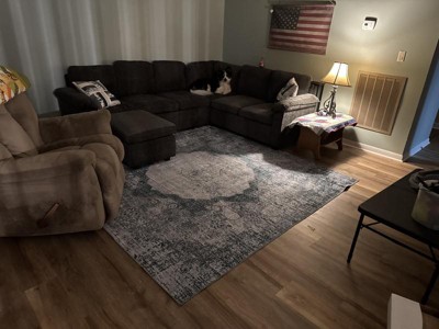 The softness and soothing colors of this rug make it a winner. I love the washable rugs I have bought. They are thin, but with a rug pad they make the perfect floor covering. They are also much easier to vacuum then thicker rugs.