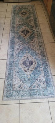 This rug inhances my kitchen space. The colors are bright and add a nice printed texture to my kitchen.