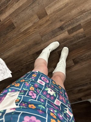 Bring your retro groovy mod vibe to a new level with these iconic knee high Gogo Boots from Unique Vintage, crafted in a white patent leatherette. Summon your groovin’ moves with the 3 inch block heels while the side zipper nips in the 16 inch diameter calf for retro frolics!