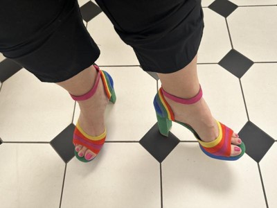 I’m OBSESSED with these shoes! I’ve gotten so many compliments everytime I wear them. Perfect for my disco and pride outfits. I’m not a big heel gal and I have a low tolerance for painful shoes. I can wear these dancing for a few hours before my feet get too fatigued.