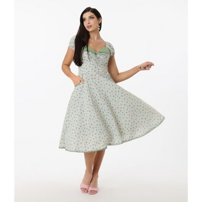 Unique Vintage Women's Sarong Dress White/Blue Stitch Print XS/2