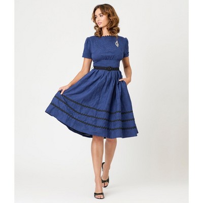 Unique Vintage Women's Smocked Bodice Midi Dress - 1 of 3