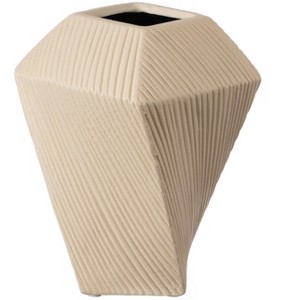 Product Name: Uniquewise 7" H Decorative Ceramic Square Twisted Centerpiece Table Vase Beige, Small