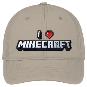Whether you're building something amazing, battling mobs, or playing with friends, show your love for everyone's favorite game in this officially licensed Minecraft I Heart Logo Dad Hat! This incredible design features the phrase: "I Love Minecraft" embroidered in themed lettering with a matching heart acting as the word 'love'. Join all your favorite boxy characters in a world of endless possibilities with fun new graphic apparel for the whole family today!