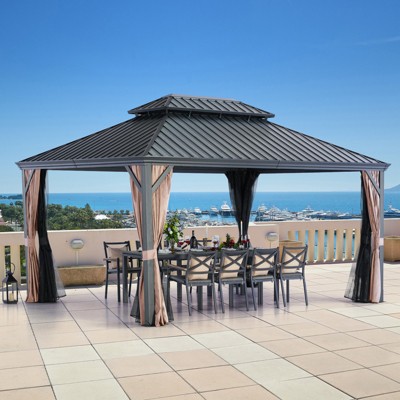 UNISOAR Hardtop Gazebo with Netting & Curtains