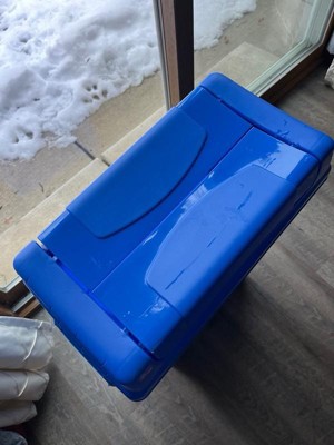 [This review was collected as part of a promotion.] We love this recycle bin! We just recently had a party and used it for recycling outdoors and everyone loved it. The bright blue color shows that it’s a recycle bin and it holds so much.