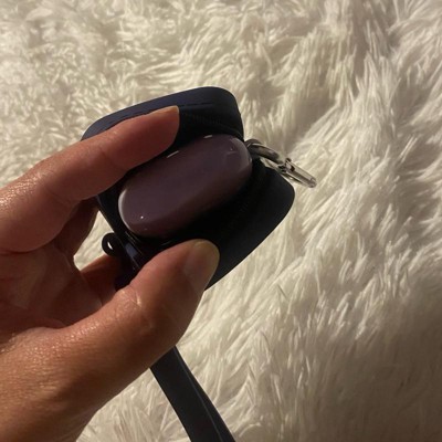 I purchased this heyday AirPods case, because I needed something easy to carry my non fruit branded earbuds in. I liked the fact that it was square, because I have several pairs of cheap but work well for me earbuds. This fits my heyday earbuds perfectly, no matter which way I place them. It also fits those freebies my son won, plus that other pair. I love the color, because it's a true navy, and the bonus charm gives it sparkle. Which helps locate it in my purse! The zipper? Smooth. Extra star for that.