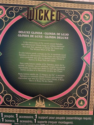[This review was collected as part of a promotion.] Glinda doll for all ages. 8 and 5 year old love this doll. She is dressed in her big pink dress from the opening scene of the movie. She comes with her wand and crown and has a stand to keep her up. Keeps daughters entertained for quite some time off and on throughout the day.