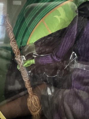 [This review was collected as part of a promotion.] This Elphaba doll from the Wicked movie has gorgeous details true to Cynthia Erivo who played her. The hair is micro-braided just like in the movie, her facial features are detailed perfectly, fully poseable, and the broom and hat look awesome and are playable without getting floppy. It's packaged in a gorgeous collector's box, too.