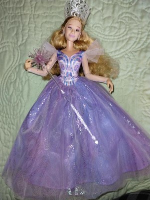 [This review was collected as part of a promotion.] Beautiful Glinda barbie. She came with a wand and a stand so she can stand up on her own. Her face looks almost exactly like the actress who played her. The clothing is of high quality as well. The only thing I don't like is her wand does not stay in her hand and her feet are not the same shape as other Barbies, so you can't really dress her differently. She has bendable arms and legs and wrists which is really nice for playtime.
