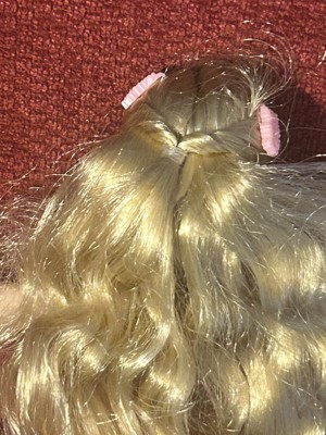[This review was collected as part of a promotion.] This doll is so vibrant! Her dress is such a beautiful color and my daughter loves the little ruffle details on it. She also loves all the different ways you can pose Glinda. Glinda can actually hold the purse in her hand and her posable legs allows her to sit many different ways, which is great when she wants to hang out in the dollhouse. Her hair is really soft and has stayed nice through lots of play because we left the twist and barrettes in.
