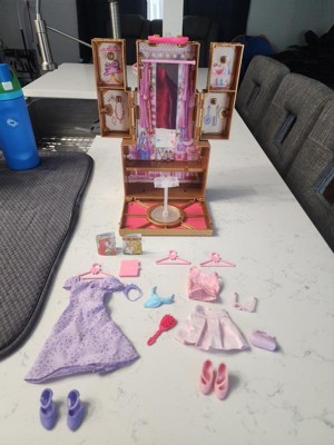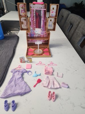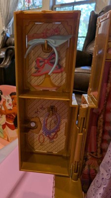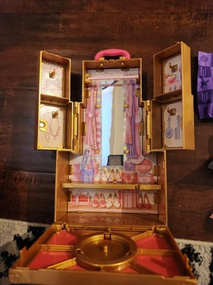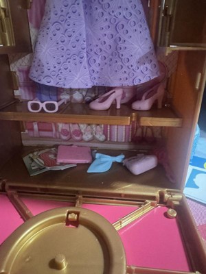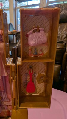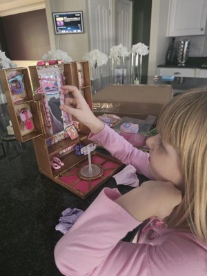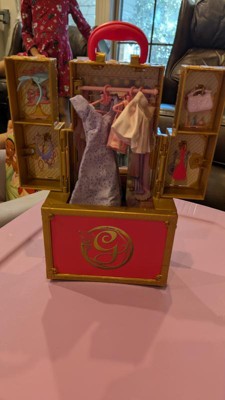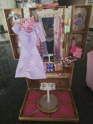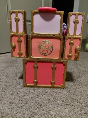 [This review was collected as part of a promotion.] The wicked Glenda's glamorous closet was a great surprise. It comes with two separate outfits, hangers for each, purse and a necklace,two sets of shoes and a brush that are all enclosed in blind bags. My granddaughter was thrilled to open all the blind bags. They are always such a treat and surprise. The closet itself looks like luggage stacked up until you open it and realize that you have a dressing area for your Glinda doll. It comes complete with a stand and a mirror for Glinda to admire herself. There is a clothes rack that moves to the side that lets Glenda see herself at the mirror. You get to hang her clothes up and they stay quite well on the little hangers. The clothes have velcro closures so easily done for children. The case itself closes again and you can carry it around. I would have liked the doll to been able to fit inside but she is too big. It's a good take and go toy. My only negative thought is that the cases have cardboard inserts instead of all plastic components,so it's wearability might not hold up intense use All in all, my granddaughter loved this case and plays with it almost daily.