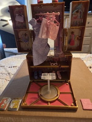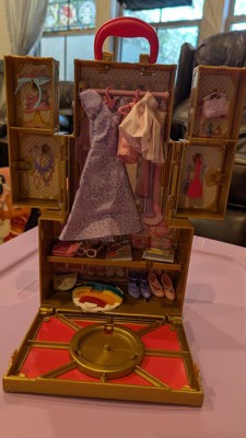 [This review was collected as part of a promotion.] My girls and I love the new Wicked “Glinda’s Glamorous Closet!” The accessories are great to use with the dolls! My girls love the little carrying handle- it is just like the real thing! I just wish the large luggage trunk was all made of plastic- I am worried that the sides being cardboard will not hold up to a lot of use. I still think it is a great addition to our Wicked set! It is so fun to dress the dolls up and pretend just like the movie!