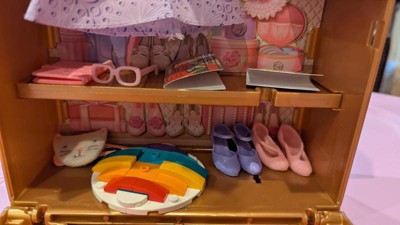 [This review was collected as part of a promotion.] My girls loved this closet trunk! It came with some cute accessories that they could use for their dolls. It was the perfect size for them to take around the home. My 3 year old loved how it opened and closed easily.